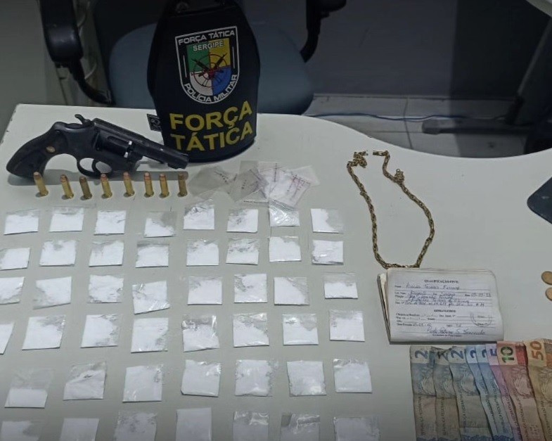 Ao perceber a presença policial, o suspeito entrou dentro de sua residência em clara tentativa de fuga, mas sem sucesso. Ele foi detido e, em sua posse, os policiais encontraram substâncias análogas a cocaína, um revólver calibre .38. “Informações da população, indicam que o indivíduo ameaçava os moradores da região”, acrescentou.