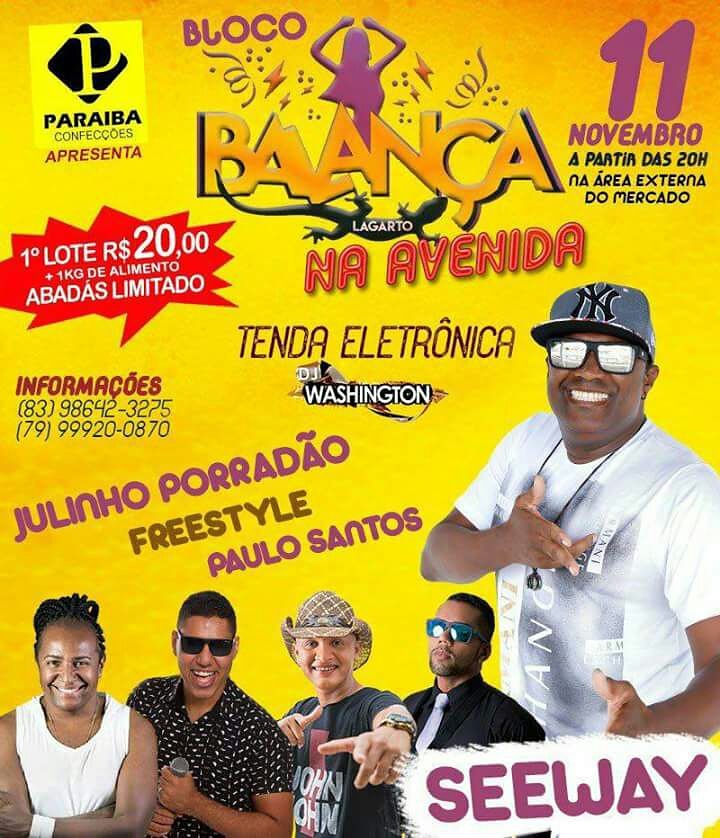 Hoje tem Bloco Balança na Avenida em Lagarto.