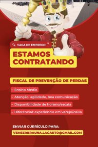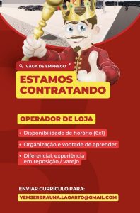 O Braúna Lagarto, rei dos preços baixos, anunciou que estão abertas novas vagas de emprego.