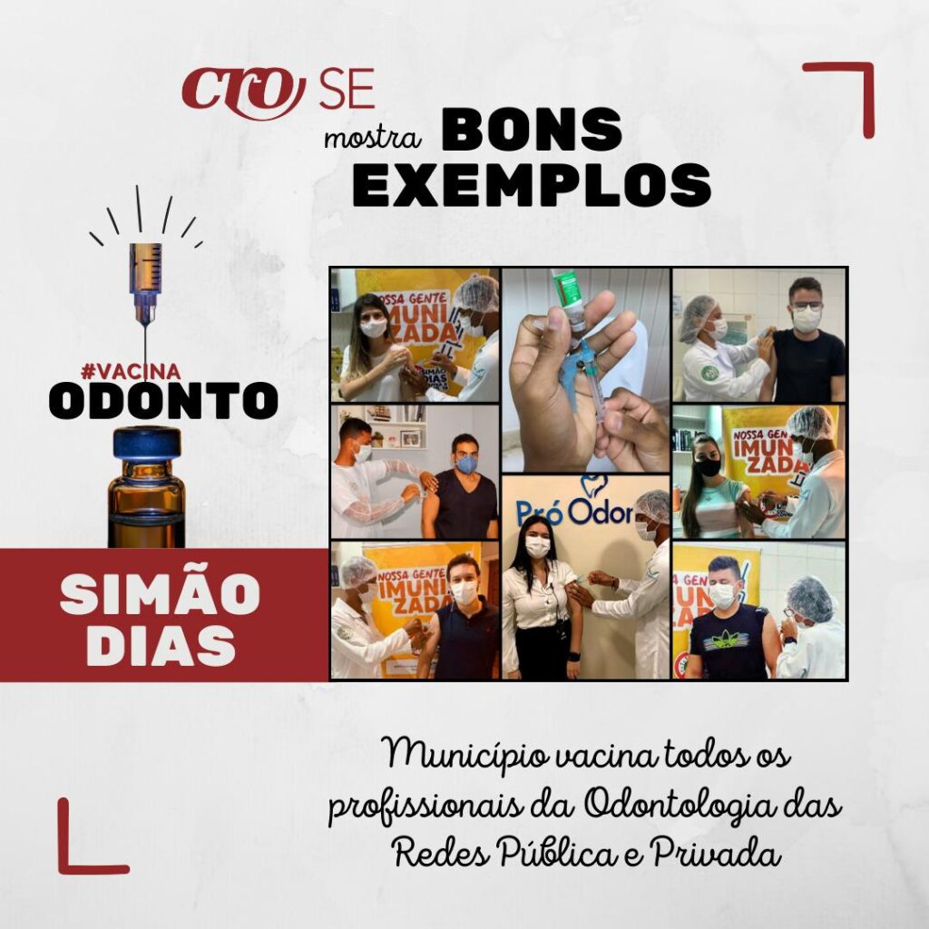 Nesta semana, a Prefeitura de Simão Dias foi parabenizada pelo Conselho Regional de Odontologia de Sergipe (CRO-SE). As congratulações vieram devido ao cumprimento da Nota Técnica do Ministério da Saúde reforçando a importância da vacinação contra a Covid-19 dos profissionais de odontologia que atuam no município.