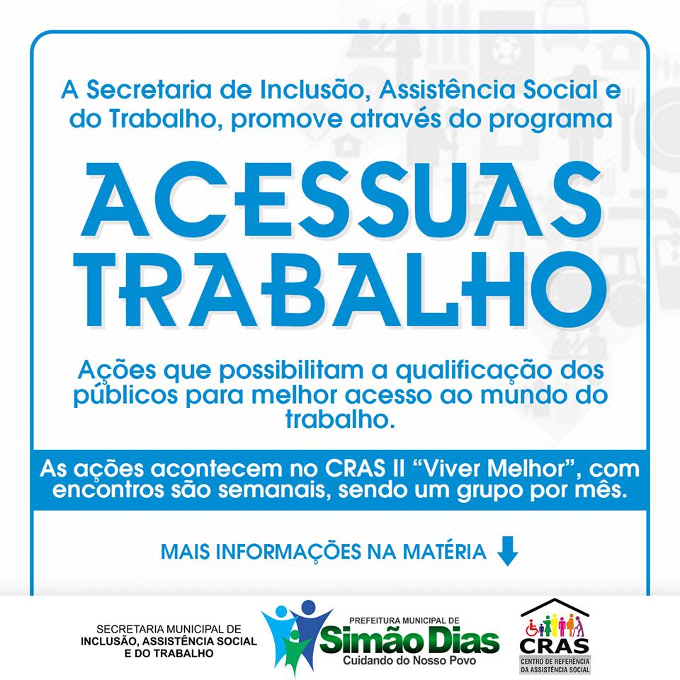 O Acessuas Trabalho é um programa ligado à Secretaria de Inclusão, Assistência Social e do Trabalho, sendo que está situado na proteção social básica, pois o mesmo visa, orientar, mobilizar, encaminhar e acompanhar o usuário dentro do mercado do trabalho.