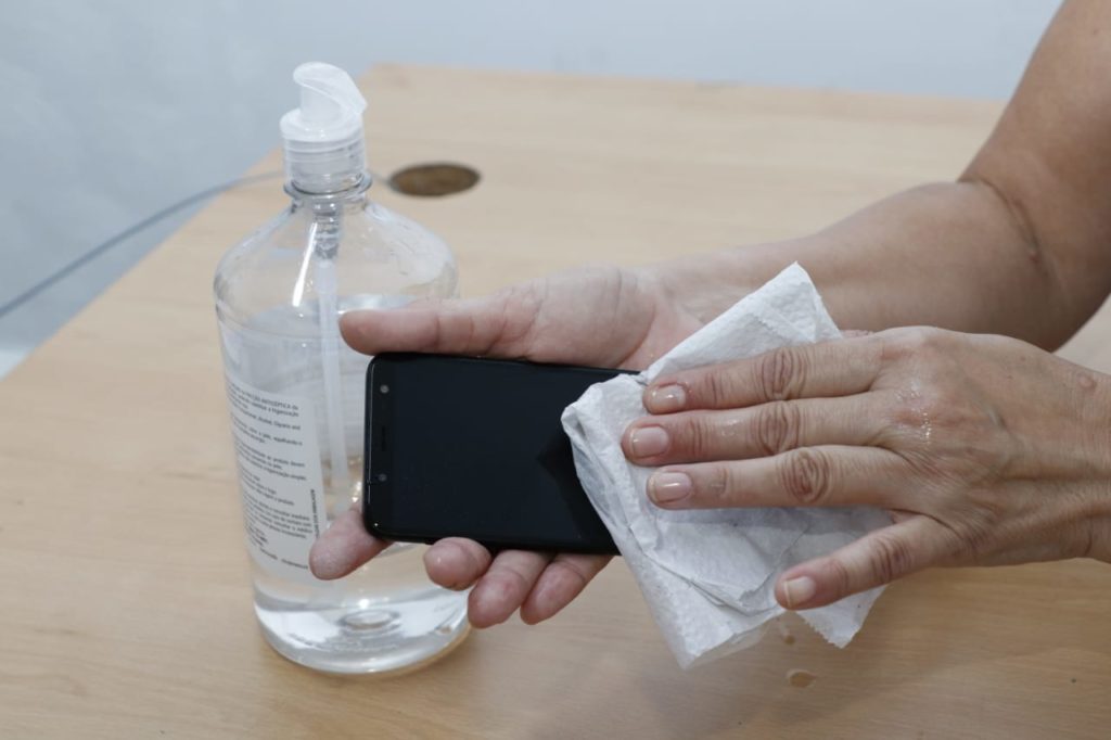 “Muitas pessoas estão passando qualquer tipo de álcool no aparelho para a limpeza e isso pode prejudicar o equipamento. O correto em primeiro lugar é desligar o aparelho, retirar a capa de proteção para higienizar, a capa traseira do aparelho, a bateria se for removível e a partir daí iniciar a limpeza com um pano macio, limpo e álcool isopropílico, indicado para a limpeza de aparelhos eletrônicos, o álcool utilizado para higienizar as mãos pode prejudicar ou corroer as peças do equipamento, por isso não são aconselháveis”, alertou o enfermeiro.