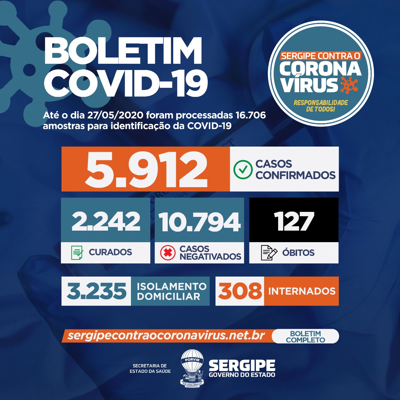 Na noite da última quarta-feira, 27, a Secretaria de Estado da Saúde (SES) confirmou mais 177 novos casos de coronavírus e 11 novas mortes por covid-19 em Sergipe, sendo um de Lagarto e outro de Riachão do Dantas. Com isso, o estado atingiu a marca de 5.912 infectados e 127 óbitos por conta da doença.