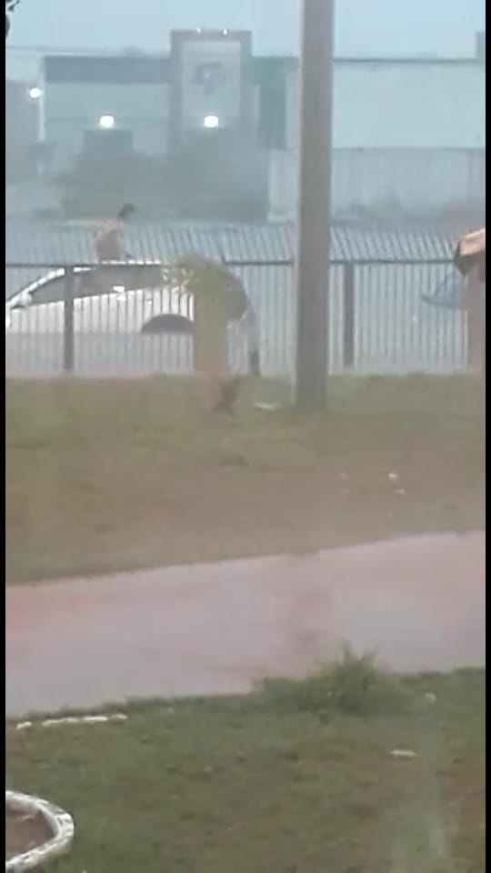 Um motorista teve o seu carro totalmente ilhado, quase submerso nas proximidades do Balneário Bica.