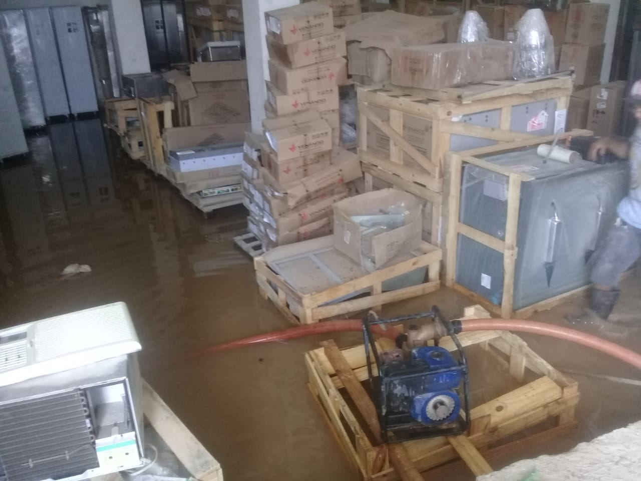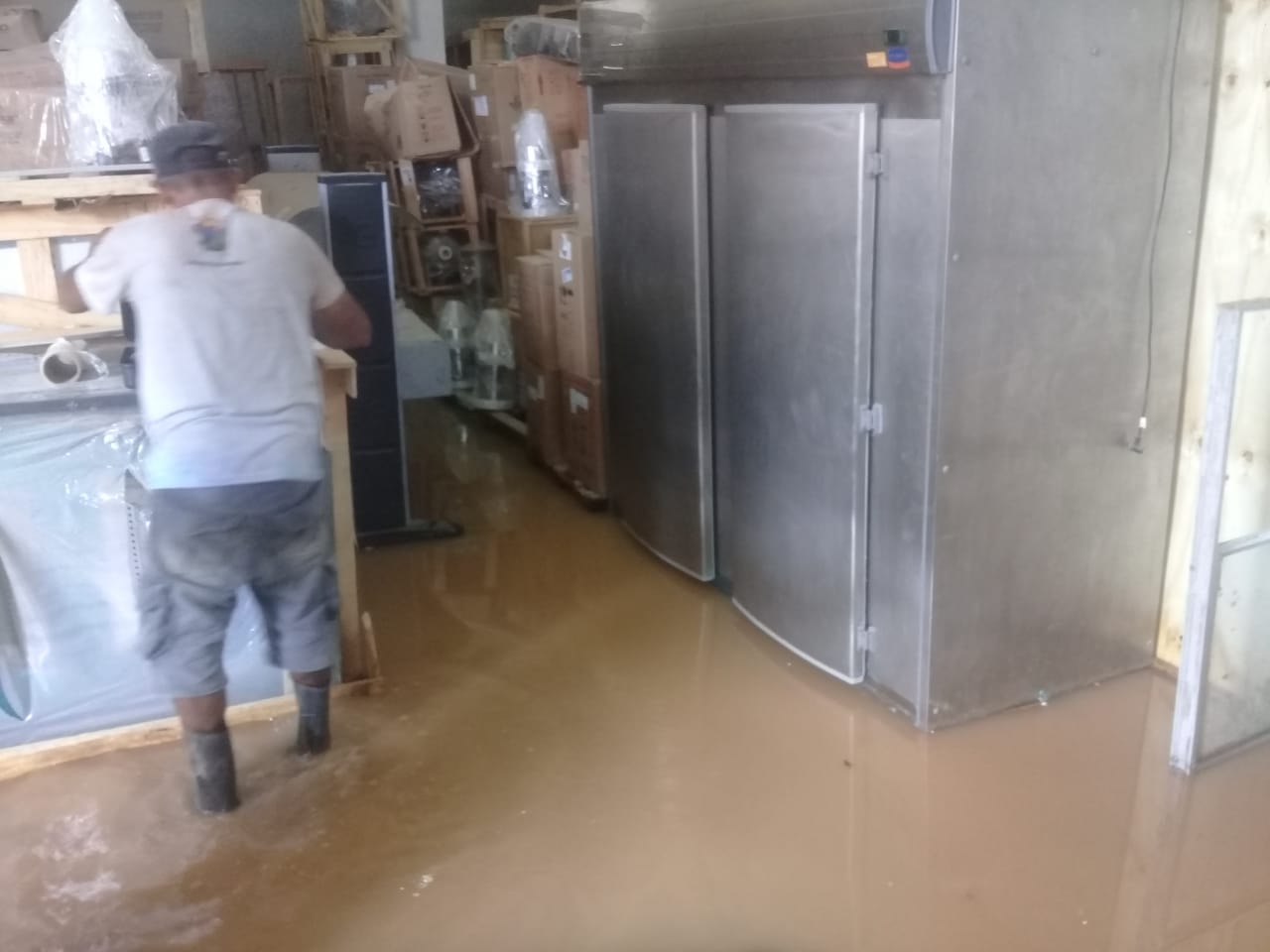 A loja Sortidos, que é uma revendedora de equipamentos para panificação, dentre outros, teve um de seus depósitos totalmente alagados com a chuva, danificando vários equipamentos.