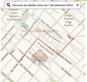 O Departamento de Trânsito e Transporte Urbano de Lagarto (DTTU) divulgou o percurso do Desfile Cívico de 07 de Setembro em Lagarto, que inicia a partir das 14h deste sábado, 07. Confira o percurso abaixo: