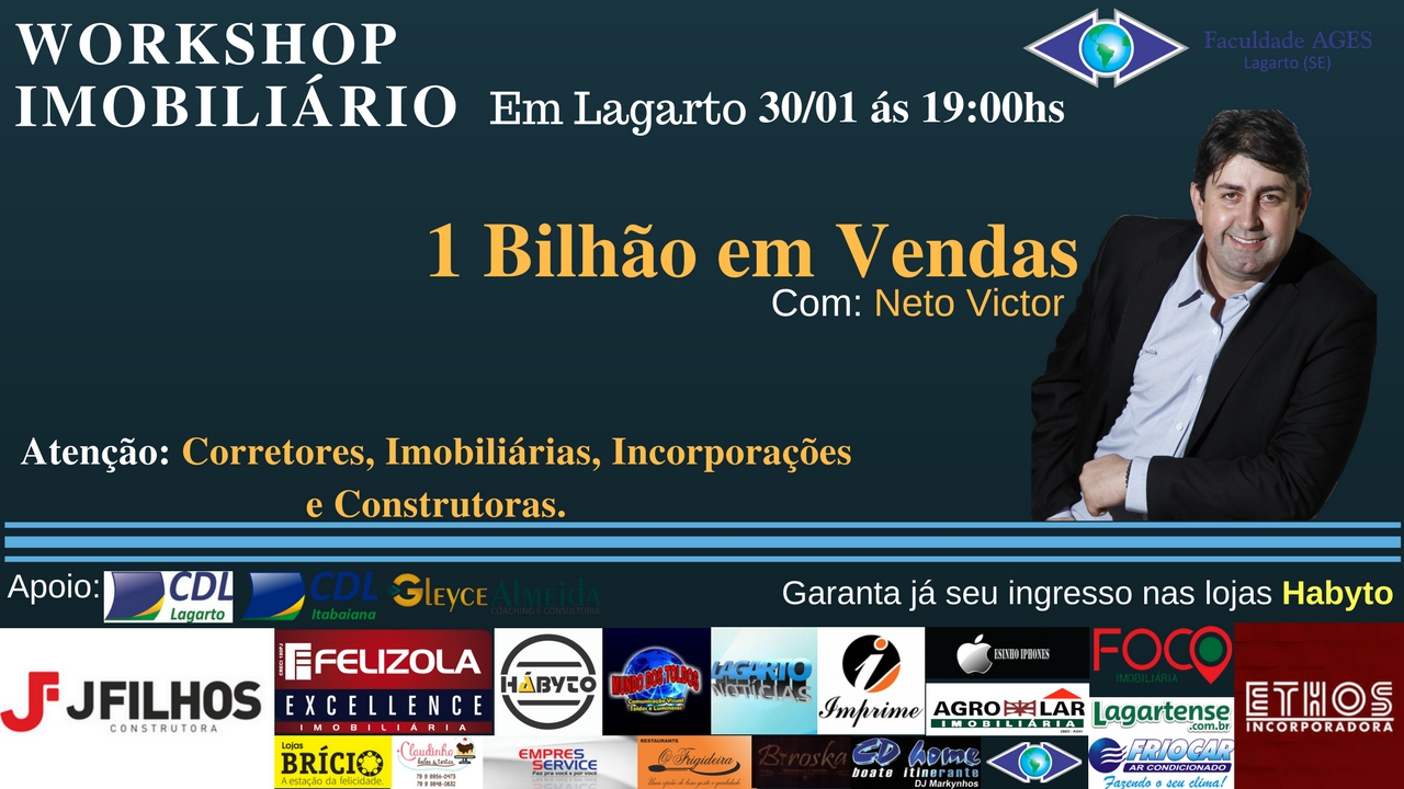 Os Coachs Marcelo Almeida e Gleyce Almeida iniciam o ano de 2018 realizando um evento que promete transformar o mercado imobiliário de Lagarto e região. Desta vez, Lagarto recebe Neto Victor o mineiro que vem treinando Corretores de Imóveis em todo Brasil.