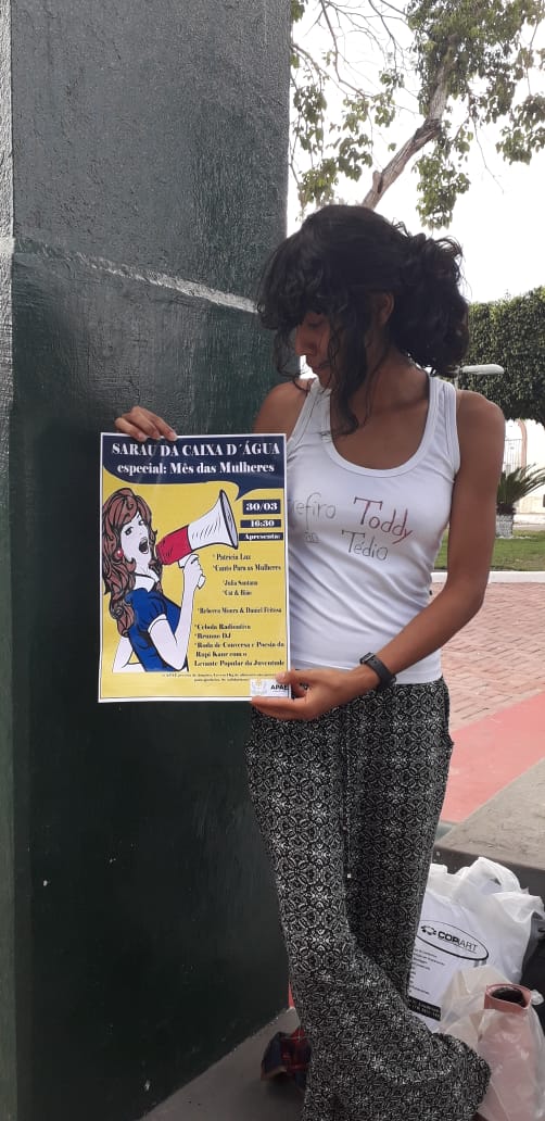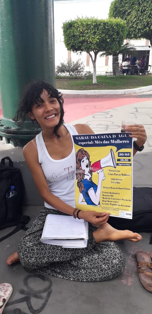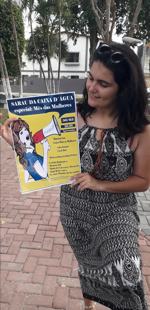 Dentro dessa trincheira cultural também está a Ativista, aspirante ao Jornalismo e poetisa, Helena Boreal. A artista de 18 anos lidera a construção da temática para as mulheres, faz a ponte com os artistas que estarão na Caixa D’água, dialoga com coletivos. Poetisa premiada, ativista da poesia, a jovem luta pela valorização dos artistas locais e suas produções.