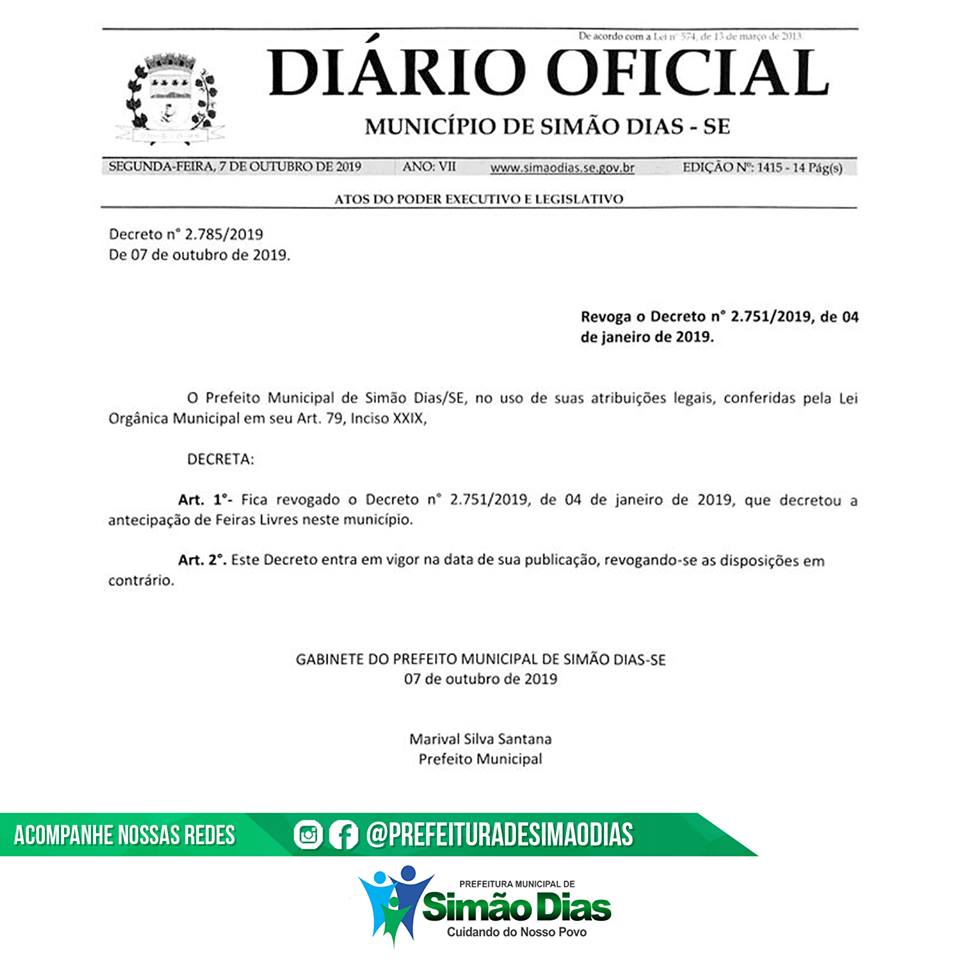 A informação foi divulgada no Diário Oficial de Simão Dias, na edição da última segunda-feira (7).