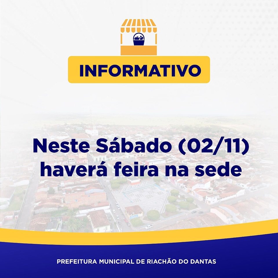A Prefeitura Municipal de Riachão do Dantas informa que a tradicional Feira Livre, que acontece aos sábados, na sede do município, será realizada normalmente no próximo dia 2, feriado do Dia de Finados.