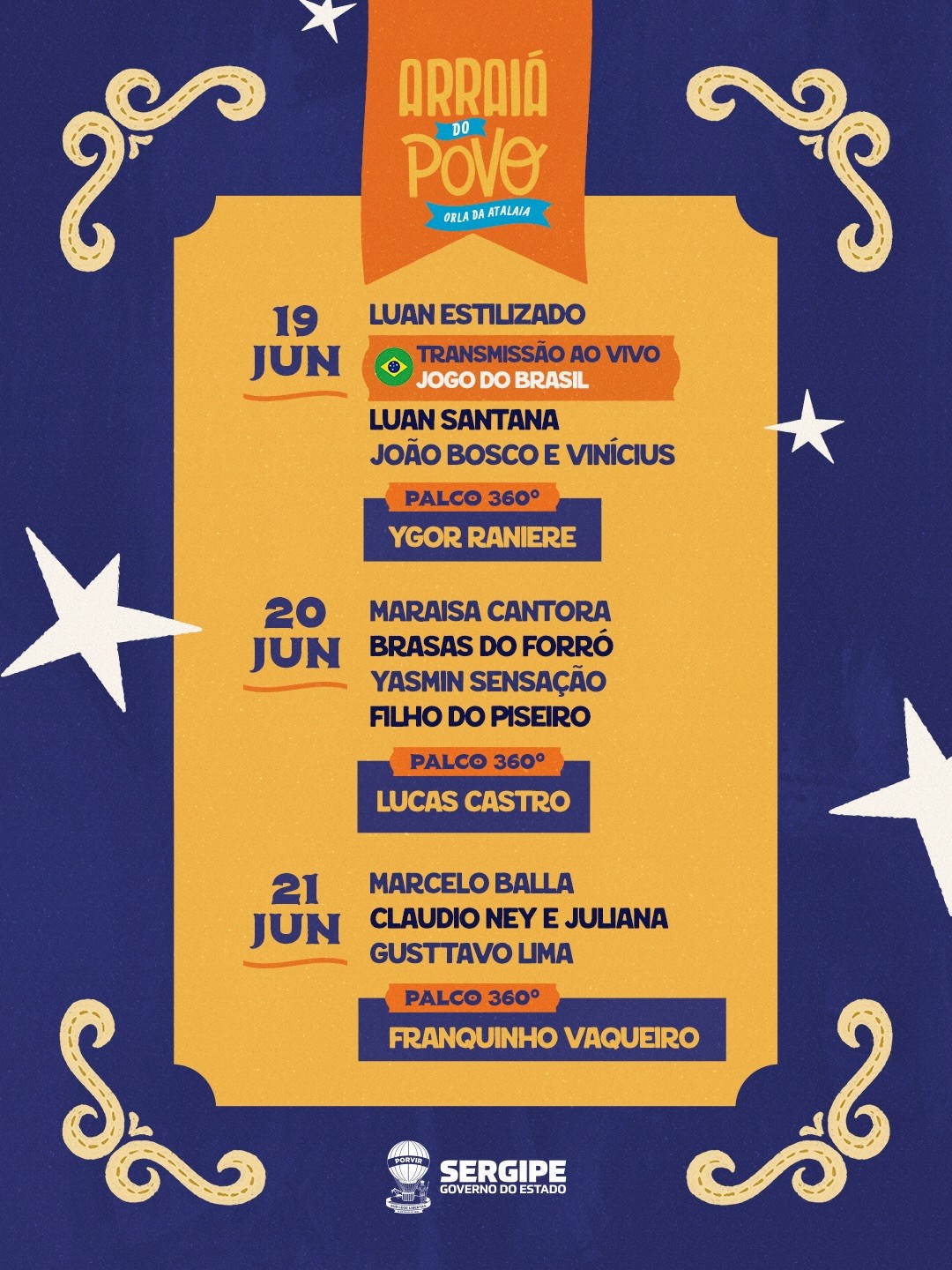 Mantendo o formato consolidado dos últimos anos, a programação contará com polos como o Arraiá do Povo e a Vila do Forró, reunindo artistas locais e nacionais, reforçando a política estadual de valorização da cultura nordestina.