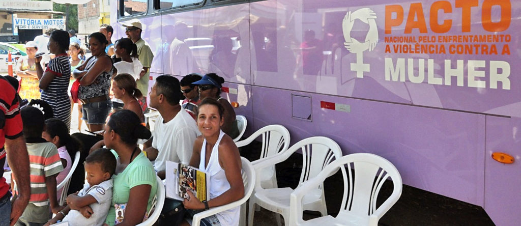 Ônibus Lilá estará a disposição para atendimento jurídico e psicológico.