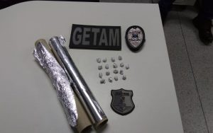 Após denúncias de tráficos de drogas no Conjunto Euclides Paes Mendonça, policiais civis e militares da cidade abordaram um homem e ao ser revistado foram encontradas com ele diversas pedras de crack, além de material para embalagem da droga.