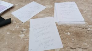 O criminoso ainda deixou recador por escrito, Se identificou como Romão, chamou os fiéis de covardes, disse que estaria no Povoado Saco Torto  e que voltaria.