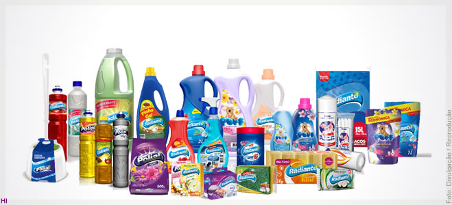 Como resultado do esforço empreendido, a Radiante possui hoje uma linha completa com mais de 400 variações de produtos para auxiliar nos cuidados com a roupa e a casa, distribuídos em 25 categorias. São eles: Amaciantes, Desinfetantes, Detergentes, Pedras Sanitárias, Gel Adesivo, Pastilhas Adesivas, Limpa-Alumínio, Limpadores Perfumados, Lava-Roupas Líquido, Lava-Roupas Pó, Sabão de Coco, Sabão Glicerinado, Tira-Manchas, Limpa-Vidros, Sacos para Lixo, Pinhos, Vassouras, Rodos, Prendedores, Álcool 70%, Escovas, Naftalina, Soda Caustica e Velas. Além disso, a Radiante detém as marcas Polial, Puff e NSP (Nossa Senhora da Piedade).
