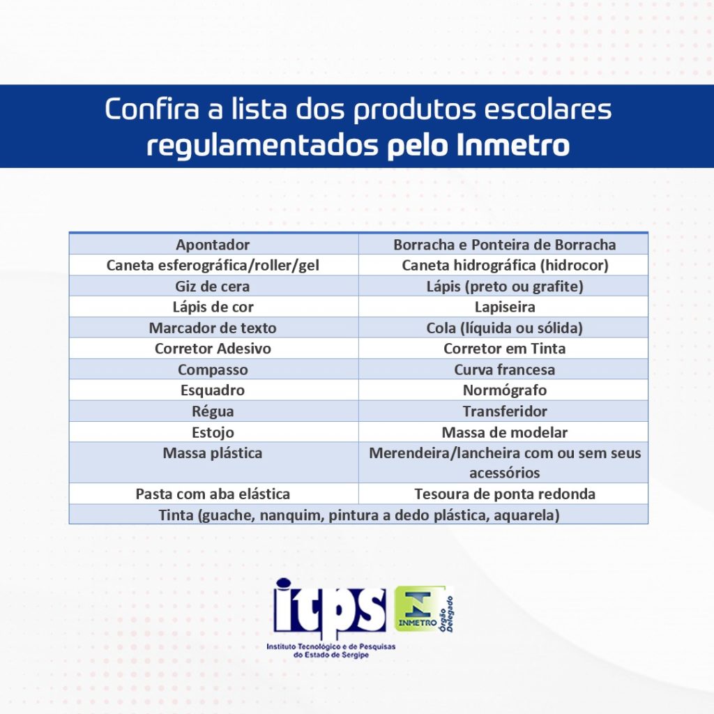 No começo desta semana, o Instituto Tecnológico e de Pesquisas do Estado de Sergipe (ITPS), Órgão Delegado do Instituto Nacional de Metrologia, Qualidade e Tecnologia (Inmetro), emitiu um alerta aos consumidores de artigos escolares neste período de volta às aulas.