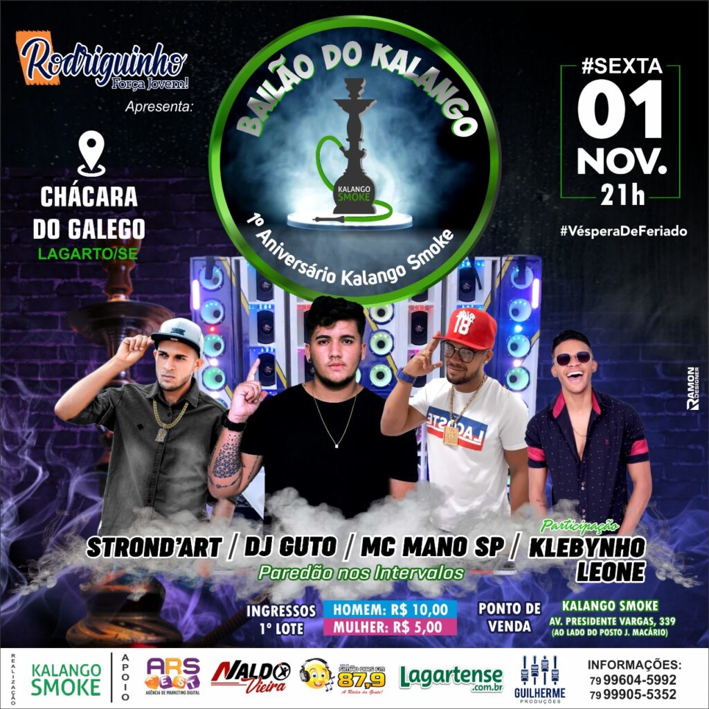 Em comemoração ao primeiro aniversário da tabacaria Kalango Smoke, acontece na próxima sexta-feira (1) em Lagarto, o Bailão do Kalango.