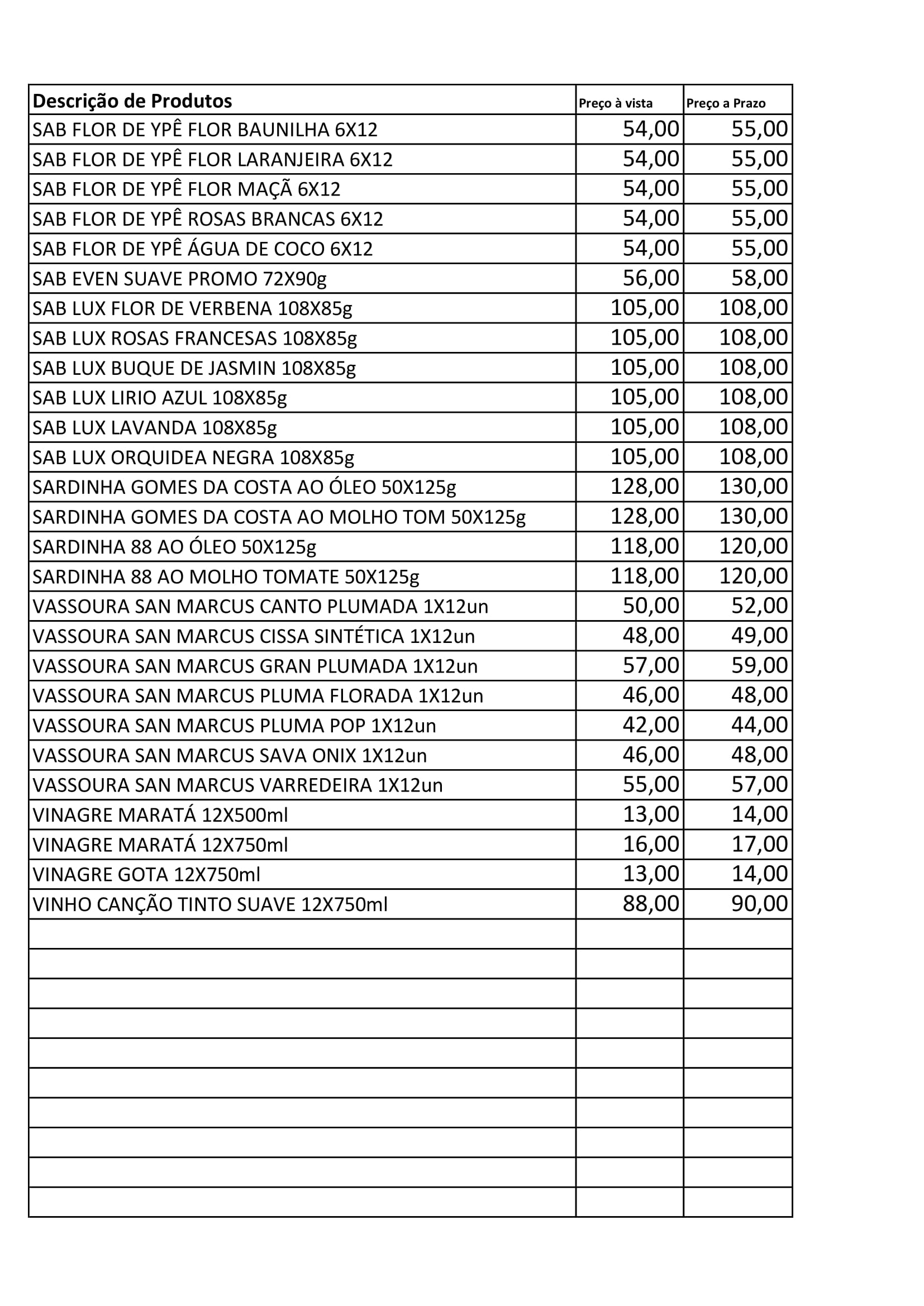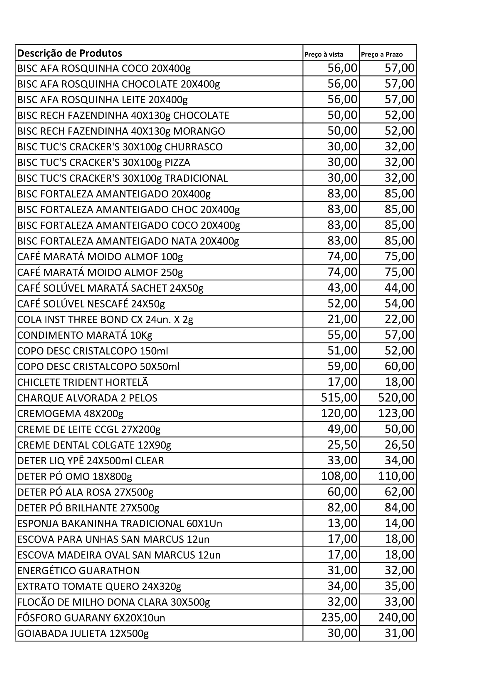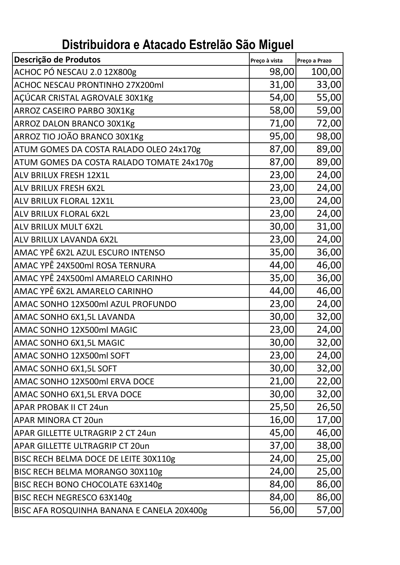 Lista Atualizada de Produtos: Distribuidora Estrelão São Miguel