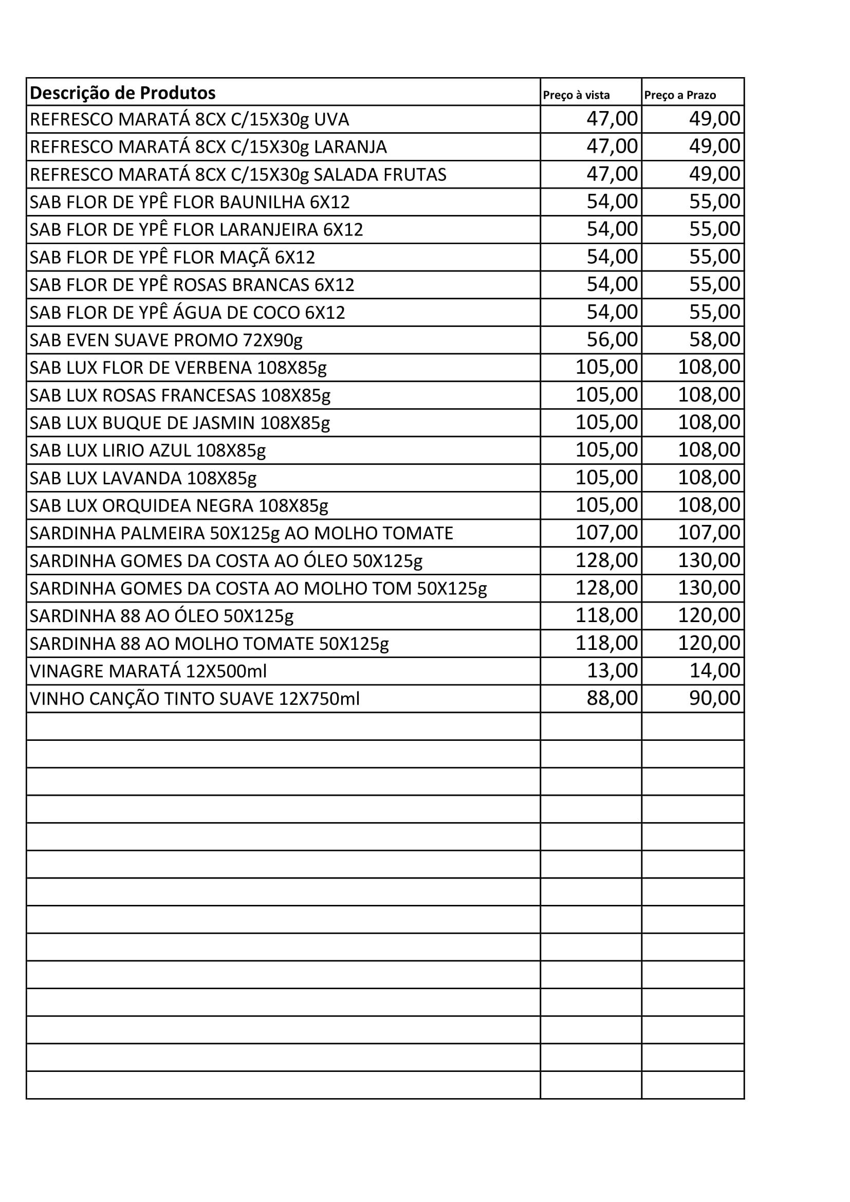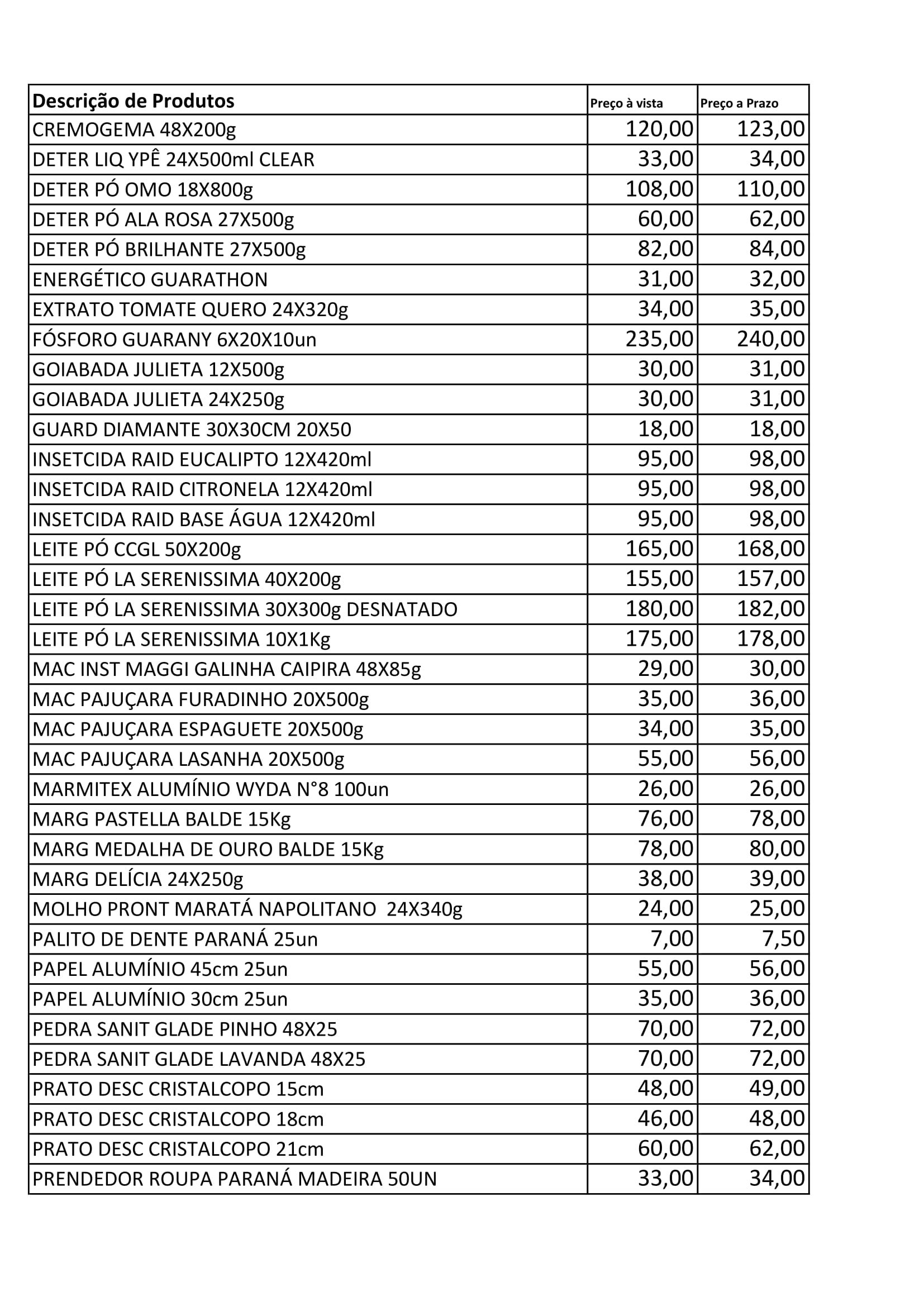 Lista de Produtos: Distribuidora Estrelão São Miguel