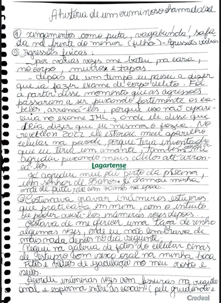 Em uma carta de 12 páginas escrita à mão, Daniele detalha abusos sexuais, físicos, patrimoniais e psicológicos sofridos nas mãos de José Lael ao longo de vários anos, além de possíveis tráficos de armas e envolvimento em homicídios. Segundo seu relato, ela apanhava frequentemente, recebendo tapas, murros e puxões de cabelo. Em um dos trechos, ela conta que, para não deixar marcas em seu corpo, José Lael a amarrava e arrancava tufos de cabelo. O advogado também teria instalado câmeras escondidas no quarto para monitorá-la e gravado estupros, com o objetivo de assistir às imagens posteriormente.