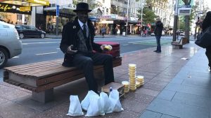 Sentado em um banco na rua Queen, uma das principais avenidas comerciais de Auckland, na Nova Zelândia, Larry Woods passa suas tardes engraxando sapatos. Vestido de forma impecável, o americano de 60 anos se oferece para lustrar os calçados de seus clientes sem cobrar nada por isso.