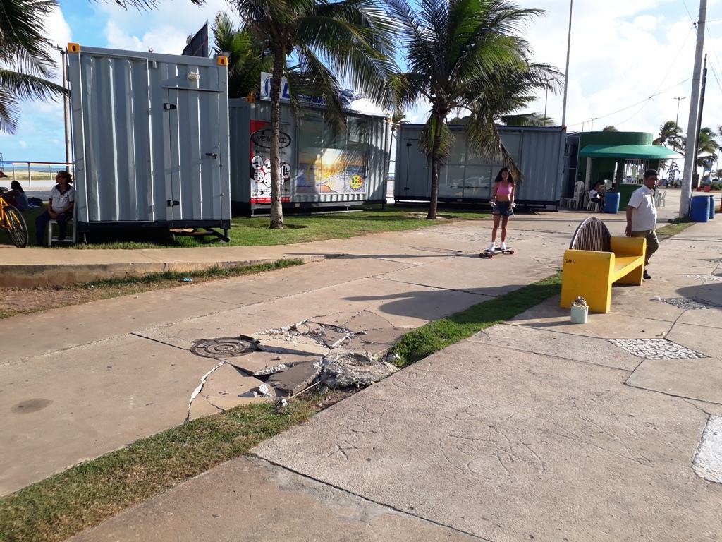 No último dia 07, foi montada uma estrutura para atividades de uma academia de ginástica, na qual se instalou três contêineres sobre o gramado, precisamente em frente à pista de patinação na Passarela do Caranguejo, causando danos à estrutura do local.