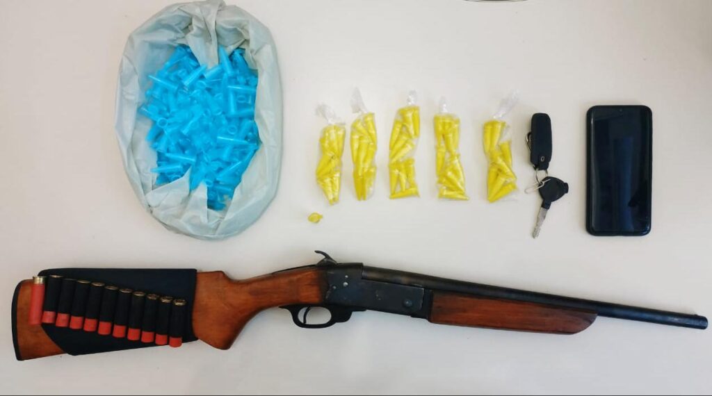 “Ao ser determinada sua parada, ele ainda tentou fugir, mas foi alcançado pela equipe. Quando revistado, foram localizados 51 pinos contendo cocaína e mais 102 outros pinos vazios. A diligência seguiu até um imóvel que ele armazenava uma espingarda, tendo sido apreendida, juntamente com onze munições”, explicou Michele Araújo.
