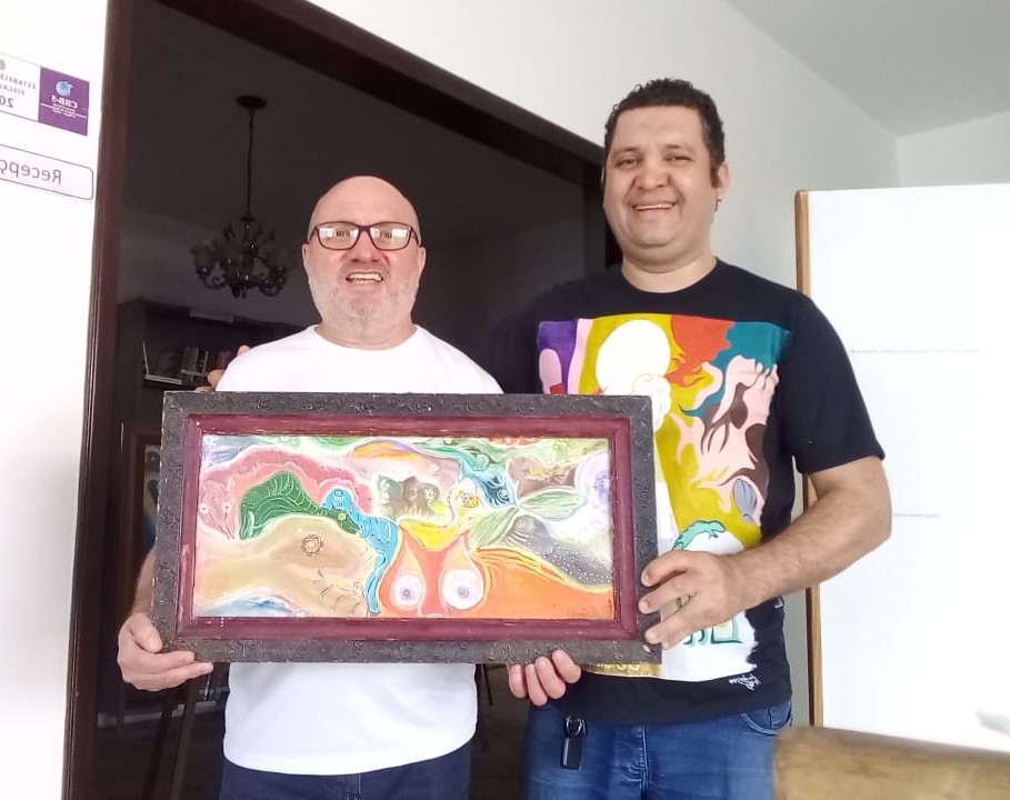 Na exposição realizada em outubro de 2018, Gildecio presenteou o poeta Assuero Cardoso