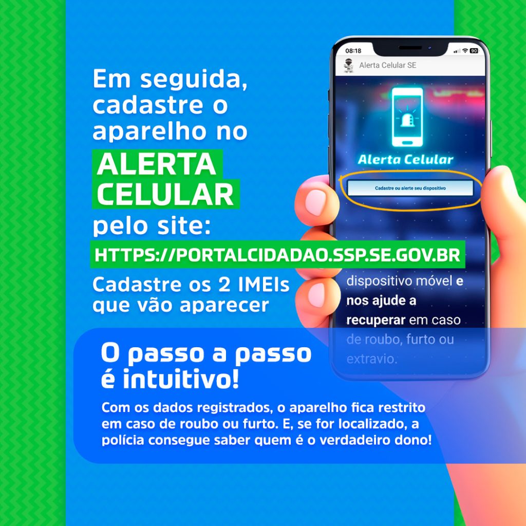 Em seguida, acesse no navegador de internet o site https://portalcidadao.ssp.se.gov.br e cadastre seu aparelho com os código de IMEI do celular. Ao salvar os dados, o aparelho já está cadastrado e, em caso de roubo ou furto, as chances de ter o aparelho encontrado e devolvido são maiores.