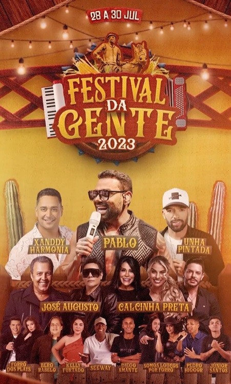 A Prefeitura de Simão Dias divulgou as atrações do Festival da Gente 2023, que acontece no município entre os dias 28 a 30 de julho.