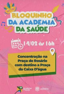 Na próxima terça-feira, 14, a Prefeitura de Lagarto, realizará o Bloquinho da Academia da Saúde.