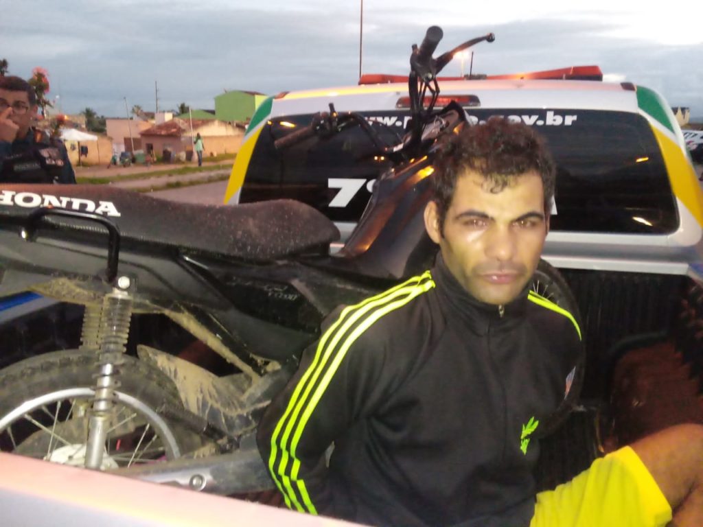 Assim que soube do ocorrido, a PM partiu em busca do suspeito e deu voz de prisão para o homem, identificado como Edcleuson Santos da Cruz, que parou sua moto. Entretanto, assim que os policiais desceram da viatura, o suspeito acelerou a motocicleta e partiu em fuga.