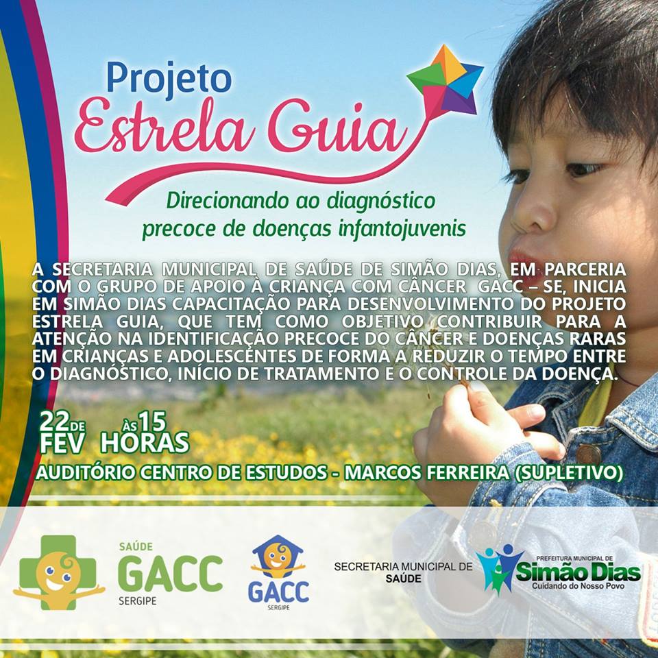 A Secretaria Municipal de Saúde de Simão Dias, através da Atenção Básica e o Conselho Municipal de Saúde, em parceria com o Grupo de Apoio à Criança com Câncer (GACC / SE), inicia no município capacitação para desenvolvimento do Projeto Estrela Guia.