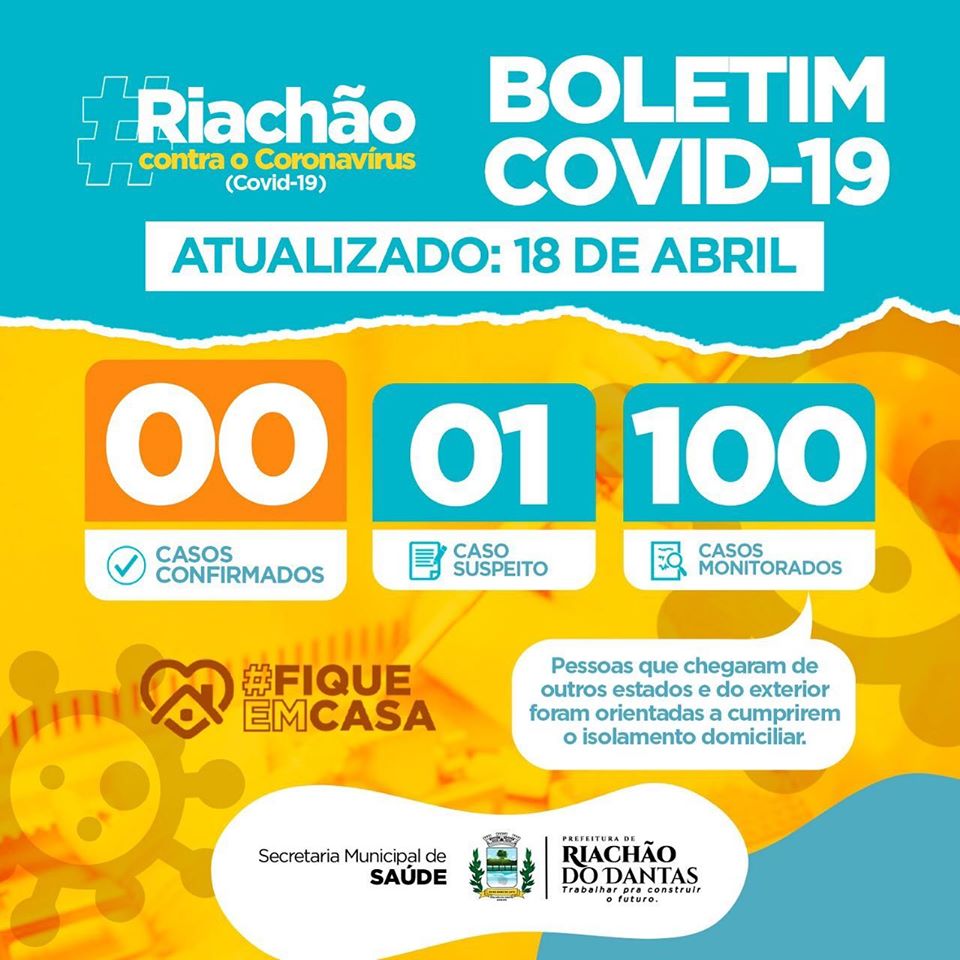 Segundo boletim relativo ao novo coronavírus (Covid-19), divulgado pela Secretaria Municipal de Saúde (SMS) de Riachão do Dantas, neste sábado, 18, o município tem um caso suspeito da doença.