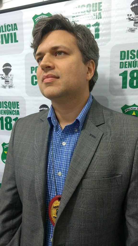 O delegado Hilton Duarte faz considerações após sua saída da delegacia de Lagarto.
