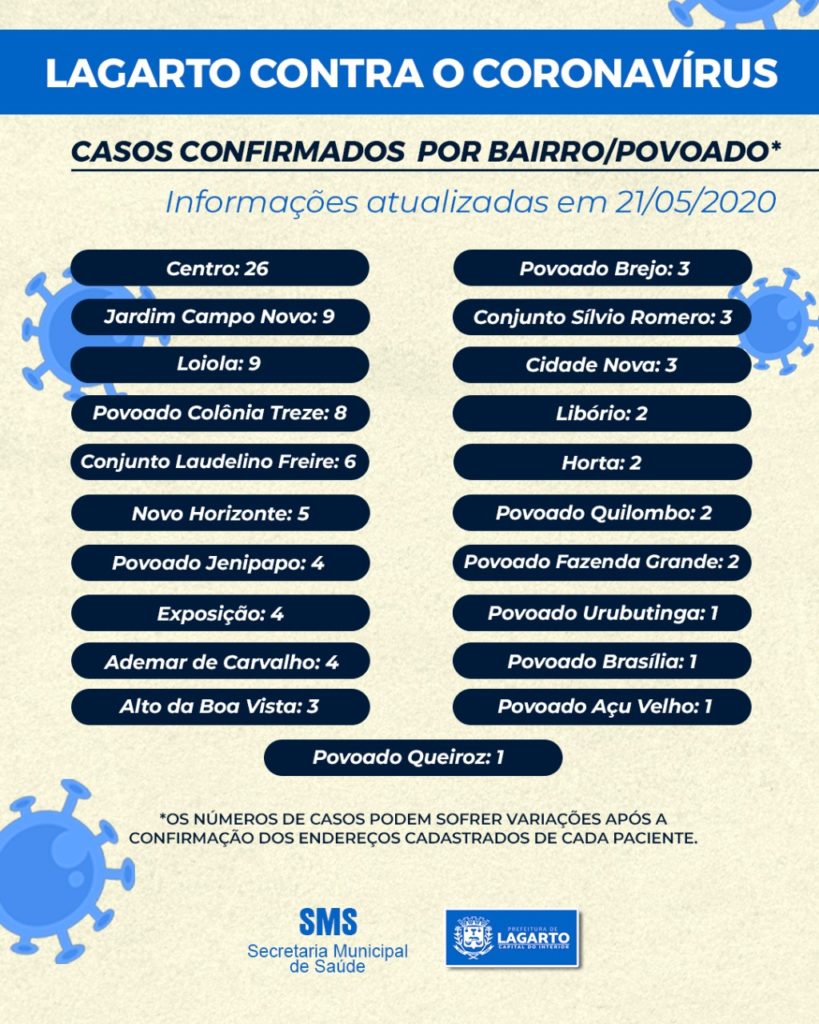 Com mais três casos confirmados de covid-19, nesta quinta-feira, 21, o município de Lagarto atingiu a marca de 99 cidadãos infectados. As informações constam no novo boletim epidemiológico divulgado pela Secretaria Municipal de Saúde (SMS).