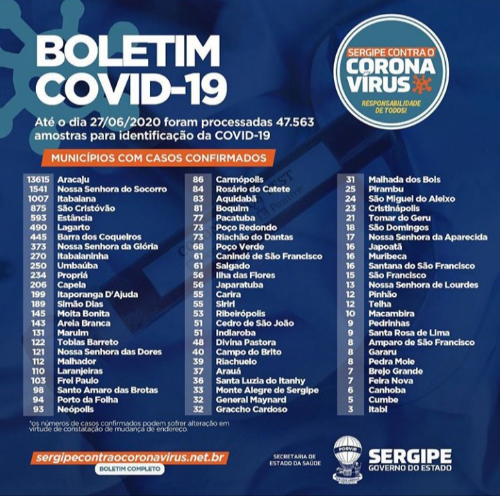 Com isso, Sergipe passa a ter 23.319 pessoas que já testaram positivo para o novo coronavírus e 605 mortes. De acordo com a SES, entre os novos casos, 975 correspondem a exames realizados entre 18 e 22 de junho, que foram processados pela Fundação Oswaldo Cruz (Fiocruz), no Rio de Janeiro.