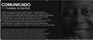 Neste contexto o falecimento do famoso jogador de Futebol Pelé (1940-2022) evidenciou toda estrutura, logística e gama de profissionais envolvidos no cerimonial de sua despedida. O local escolhido para o sepultamento foi o Cemitério vertical Memorial Necrópole Ecumênica, localizado na cidade de Santos em São Paulo.