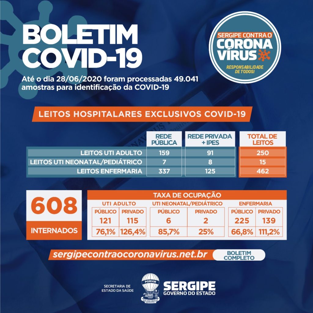 Segundo o boletim epidemiológico divulgado pela Secretaria de Estado da Saúde (SES) no último domingo, 28, Sergipe registrou 1.102 novos casos de covid-19 e 15 óbitos. Com isso, já são 24.421 pessoas que já testaram positivo para o novo coronavírus e 620 mortes causadas pela doença.