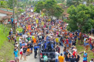 Derrubado o Mastro, uma árvore de eucalipto oriunda de replantio, a multidão seguiu em um grande cortejo, motociata e carreata ao som da banda “Seeway Elétrico” até a Praça do Tanque Grande. Que passaram o bastão para “Saia Rodada Elétrica”, comandando a festa até o Ribeirão, onde o mastro foi fincado para a ‘Silibrina’ na próxima quarta-feira, 31.