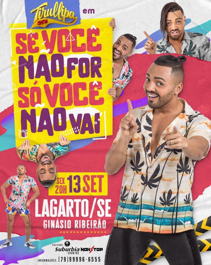 Fenômeno da comédia, o humorista Tirullipa apresenta o show “Se você não for só você não vai” em Lagarto, no dia 13 de setembro. A apresentação será às 20h, no Ginásio Ribeirão.